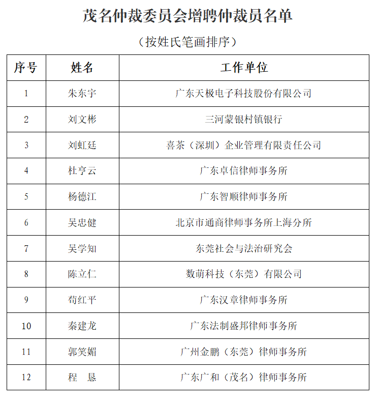 附件:《茂名仲裁委员会增聘仲裁员名单》